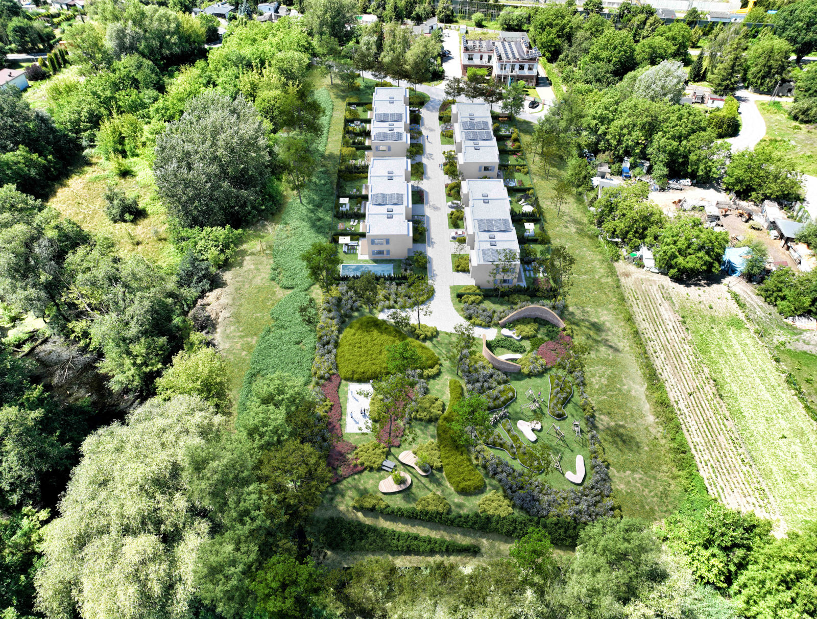Mokotowska Przystań to unikalne osiedle składające się z 16 nowoczesnych domów jednorodzinnych, położone w prestiżowej dzielnicy Mokotów, w sąsiedztwie malowniczej rzeki Wilanówka. Kameralny charakter osiedla, połączenie nowoczesnych rozwiązań z ekologicznymi technologiami oraz dbałość o wysoką jakość materiałów tworzą przestrzeń idealną do życia w zgodzie z naturą.